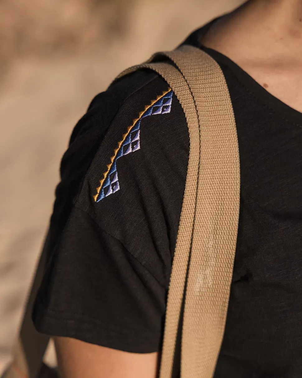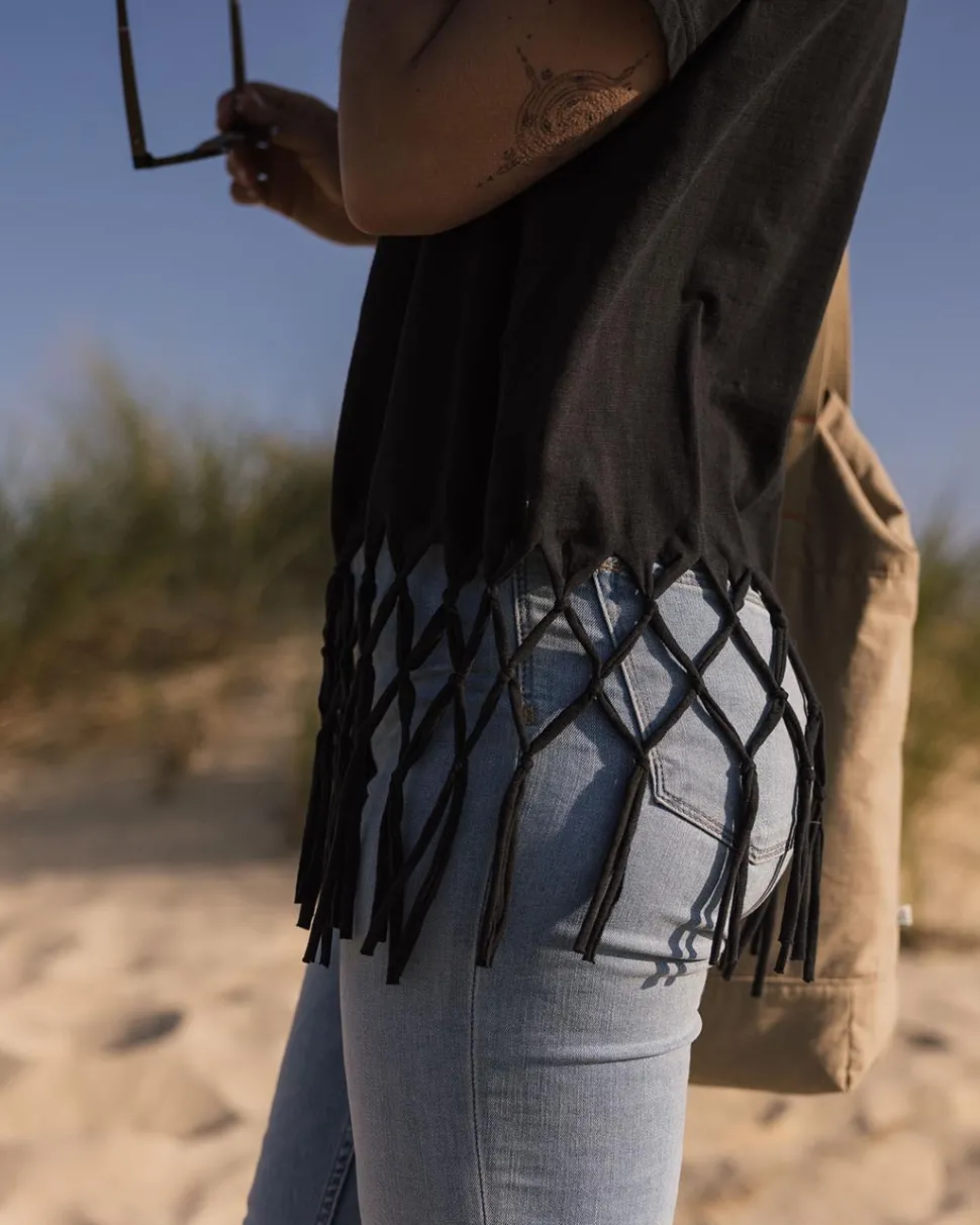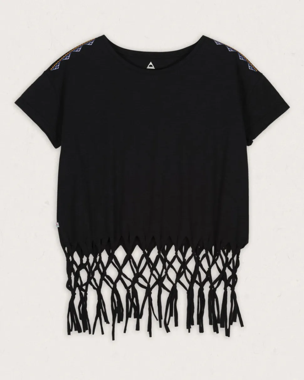 Clearance Passenger Henna Recycled Cotton Tassel T-Shirt Black