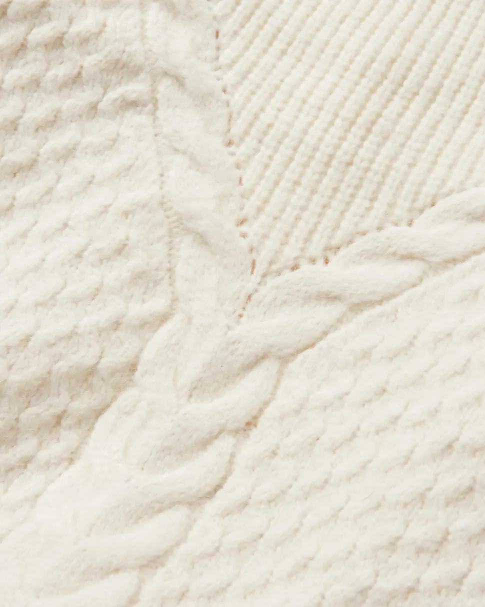 A timeless throw on layer and an absolute wardrobe staple, the Cozy Recycled Cable Knit has a classic cable design and a mock neck for extra comfort and warmth.